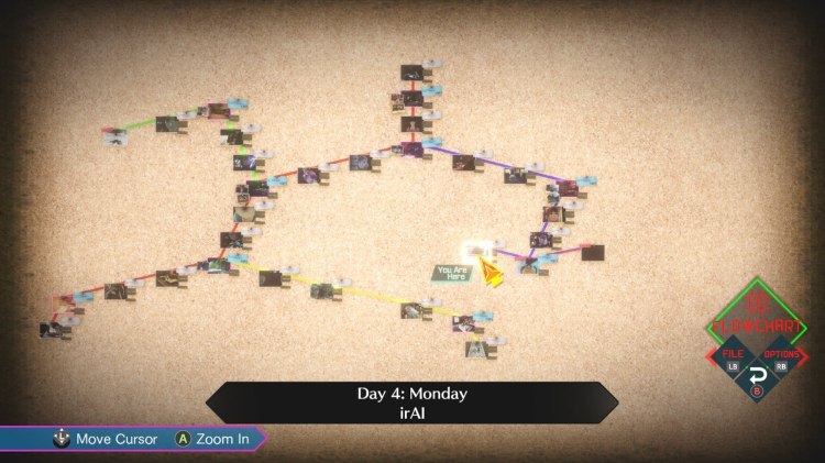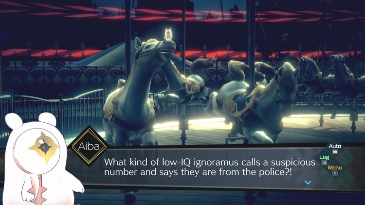 The cool thing about the way the routes are chosen, are actually done in the somniums though. So depending what actions you take, lock you down a specific path that you can sort of see, which then leads you onto your desired path. So instead of making the right dialogue choices, like in so many other visual novels, I did really like the shake up in this! Plus it was really funny seeing Aiba’s reaction to the different routes.