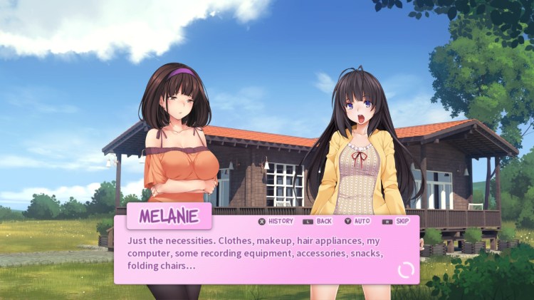 I was expecting a risqué story, as that’s what Gamuzumi loves to publish. Silly sexy stories. But this game is very much intended for an adult audience, and to be read while no one is around! It all started off game honestly. Some shots of the girls in bikinis, jokes about seeing each other naked, so on and so forth. But when I got a CG image of full on nudity, I was very shocked that there was no censorship! I’m so used to censorship. Not only does the game not censor anything, there’s also times in the story about very descriptive sex acts that the ladies do to each other. Thankfully I was alone so I didn’t have anyone asking what I was doing. But again it was very unexpected.