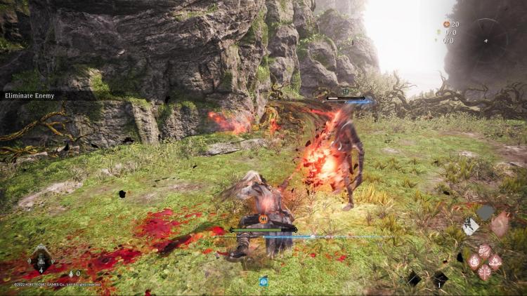 Instead of a normal stamina gauge, which everyone is probably used to by now, you have a “spirit” gauge. When you attack enemies, this builds up and allows you to use spells or weapon abilities. As you take damage, or use your heavy attack, it degrades. If it degrades far enough, you get winded, leaving a chance for a power attack from the enemies. But it works the same way with enemies, where if you deplete their spirit gauge, you can use a powerful attack, and do huge amounts of damage. This is one of the systems that I honestly found to be poorly explained. It wasn’t until about halfway through that it dawned on me, that it acts as my stamina bar.