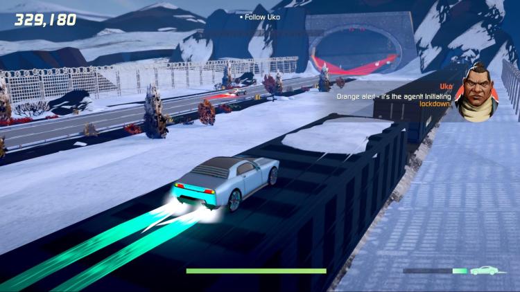 Even though I had no control, it was still a blast using this spy car, as it changed from a car, to a boat, to a snowmobile, it was amazing to see the creativity that the devs put into it. I enjoyed blasting enemies with all the super weapons I had at my arsenal when I got a weapons pick up, or just slamming into them and watching them careen off the road.