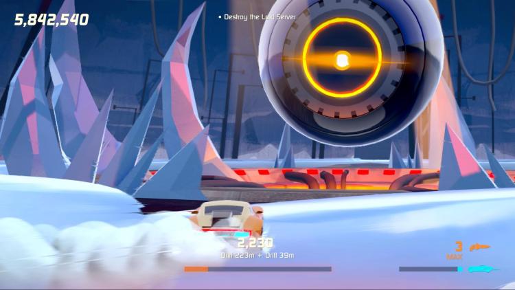 As much as you’re put in control of your car, you also have very little control as well. The game plays like an on rails shooter, in the sense that you don’t really get to control your movement. Like it or not, the car drives by itself. You get to steer left and right, and use boost to go a bit faster, or start a drift around corners, but even drifting for example, I felt like I had no real control over the car. This was a bit infuriating, especially when I was doing challenges for the levels that required me to pick up score collectibles or not run into other vehicles. Chances are, I would run into vehicles on a drift because again, I had no control over the car.